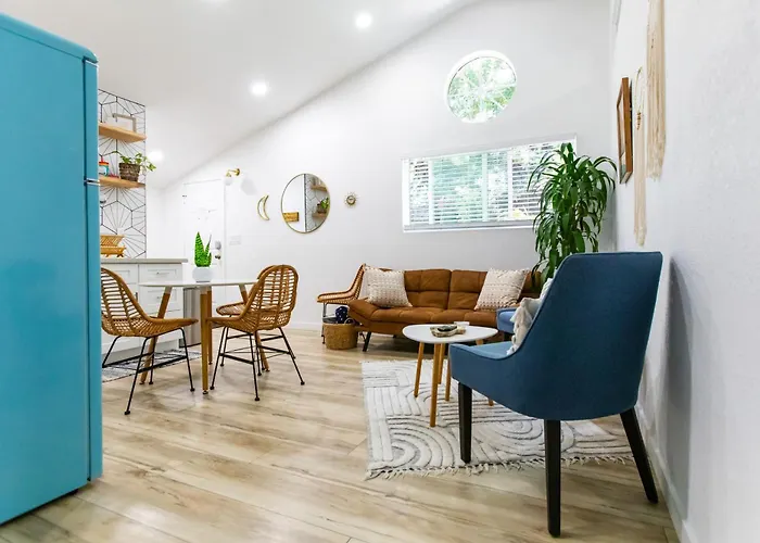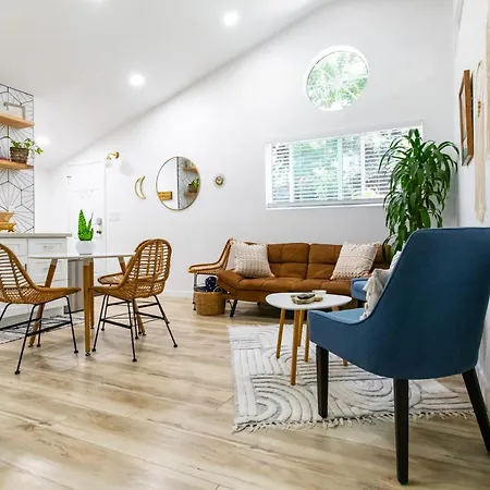 Mit einer Sitzecke, die mit einem Sofa und einem Schreibtisch und zusätzlichen Annehmlichkeiten wie einer Klimaanlage ausgestattet sind, bietet diese Unterkunft höchsten Komfort. Das Stylish Casita Min From The Beach ! bietet auch einen Flachbildfernseher mit Satellitenkanälen und ein Fernsehen mit mehreren Kanälen und Sicherheitseinrichtungen, darunter Rauchmelder, die für Ihre Sicherheit sorgen. Dieses Apartment verfügt außerdem über 1 Bad mit einer getrennten Toilette, einer Badewanne und einer Dusche. Ein Haartrockner, ein Wäschetrockner und Handtücher sind ebenfalls vorhanden.